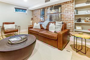 The Metal Oak suite encapsulates the "Scandinavian Modern" style. This garden-level suite on Savannah's historic Jones Street -often cited as one of the most beautiful streets in the United States- has undergone a complete facelift. We have exposed the original 1862 brick walls in the living room, had a custom metal barn-door created in the kitchen entry way, re-worked the kitchen to raise the ceilings, open the walls and add luxury features, including high-end leathered granite countertops, brand new stainless steel appliances, a wine chiller, and open black walnut shelves custom-made by Black Dog Salvage, as seen on DIY Channel's Salvage Dawgs.
