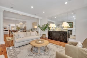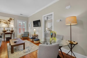 The carriage house, adjacent but separate from the main home, provides a private escape and you'll find the fourth bedroom here. Perfect for guests seeking privacy or adult children, the carriage house includes a full kitchen, a cozy living room with a queen sleeper sofa, and a bedroom with a queen bed and ensuite bathroom.